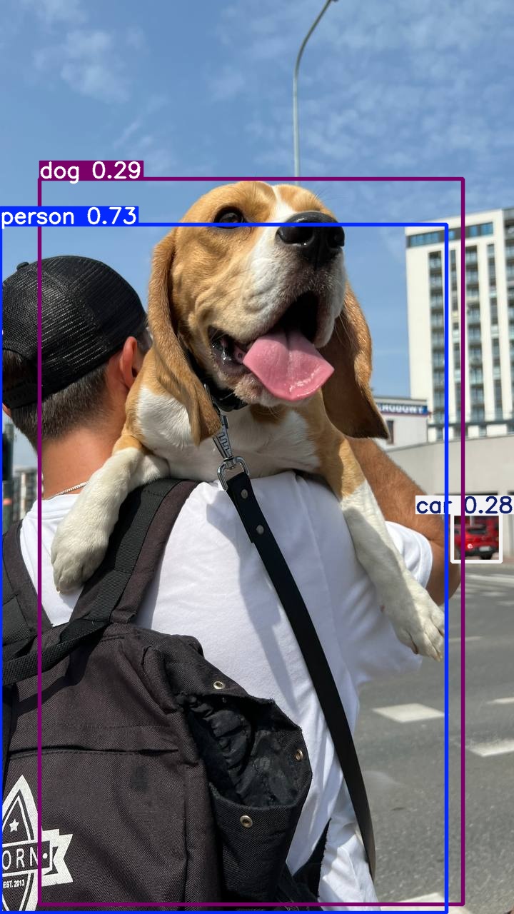 image 1/1 aup-ai-tutorials\train\dog.jpeg: 640x384 1 person, 1 car, 1 dog, 61.1ms