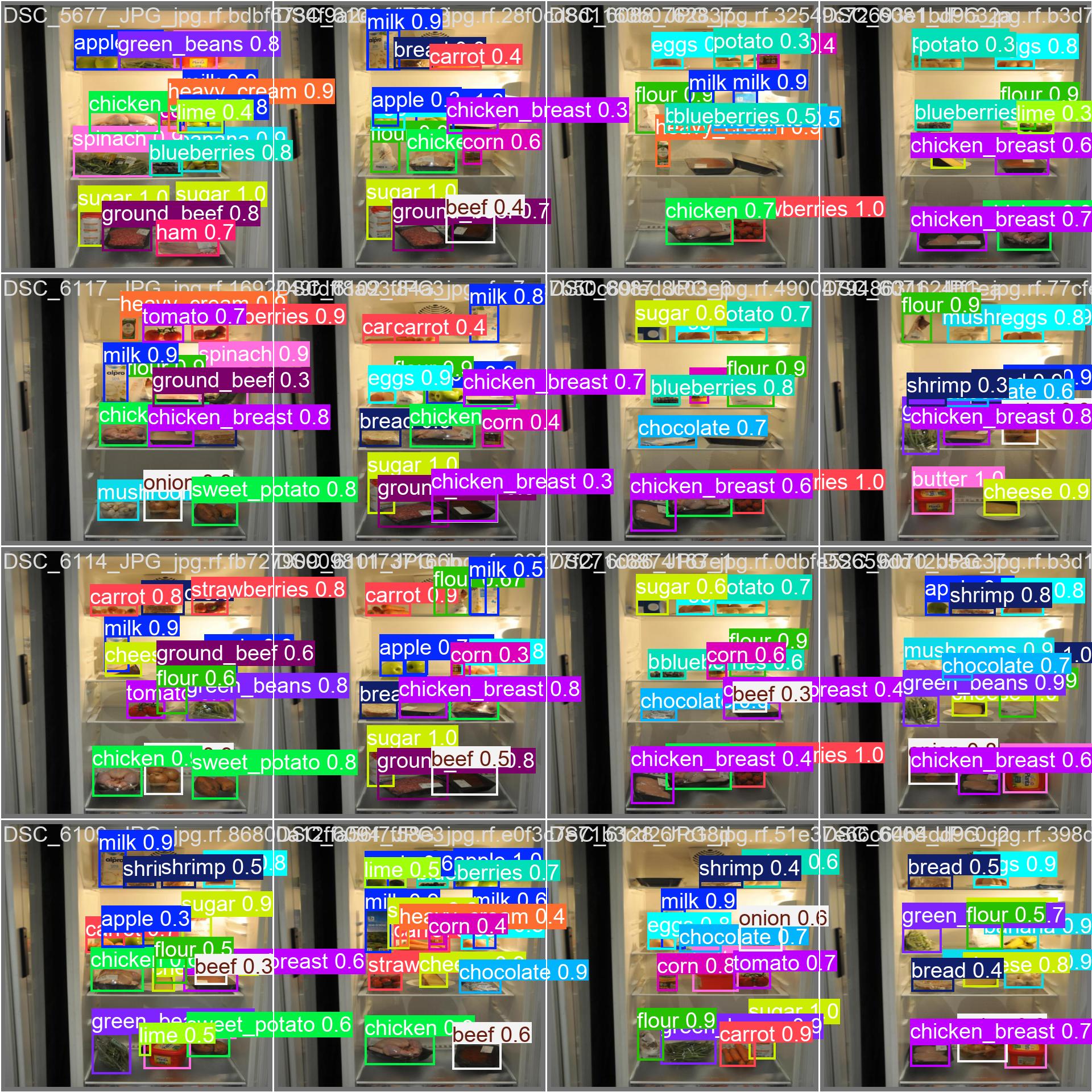 image 44/51 aup-ai-tutorials\train\aicook-4\test\images\DSC_6112_JPG_jpg.rf.7adc4e1f67cd111a7aebd2d3af0d264b.jpg: 800x800 1 apple, 1 bread, 1 butter, 1 cheese, 1 chicken, 1 chicken_breast, 1 eggs, 1 flour, 1 green_beans, 1 ground_beef, 1 shrimp, 1 strawberries, 1 sweet_potato, 110.8ms